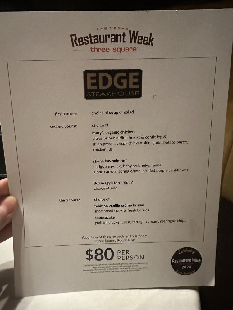 Edge Steakhouse Menu (Update 2025)