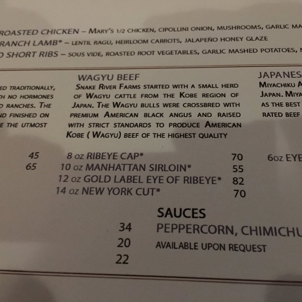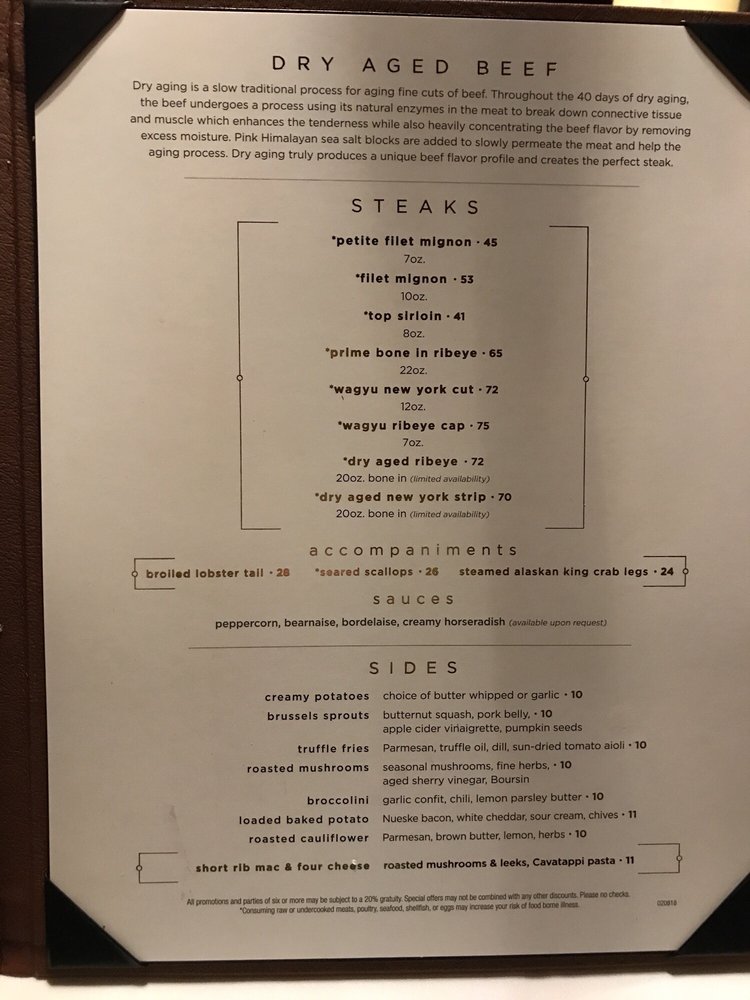 20 oz. Bone-in. Consuming raw or undercooked meats, poultry, seafood, shellfish, or eggs may increase your risk of foodborne illness. Menu items may contain or come into contact with wheat, eggs, peanuts, tree nuts, fish, shellfish, soy, and milk.